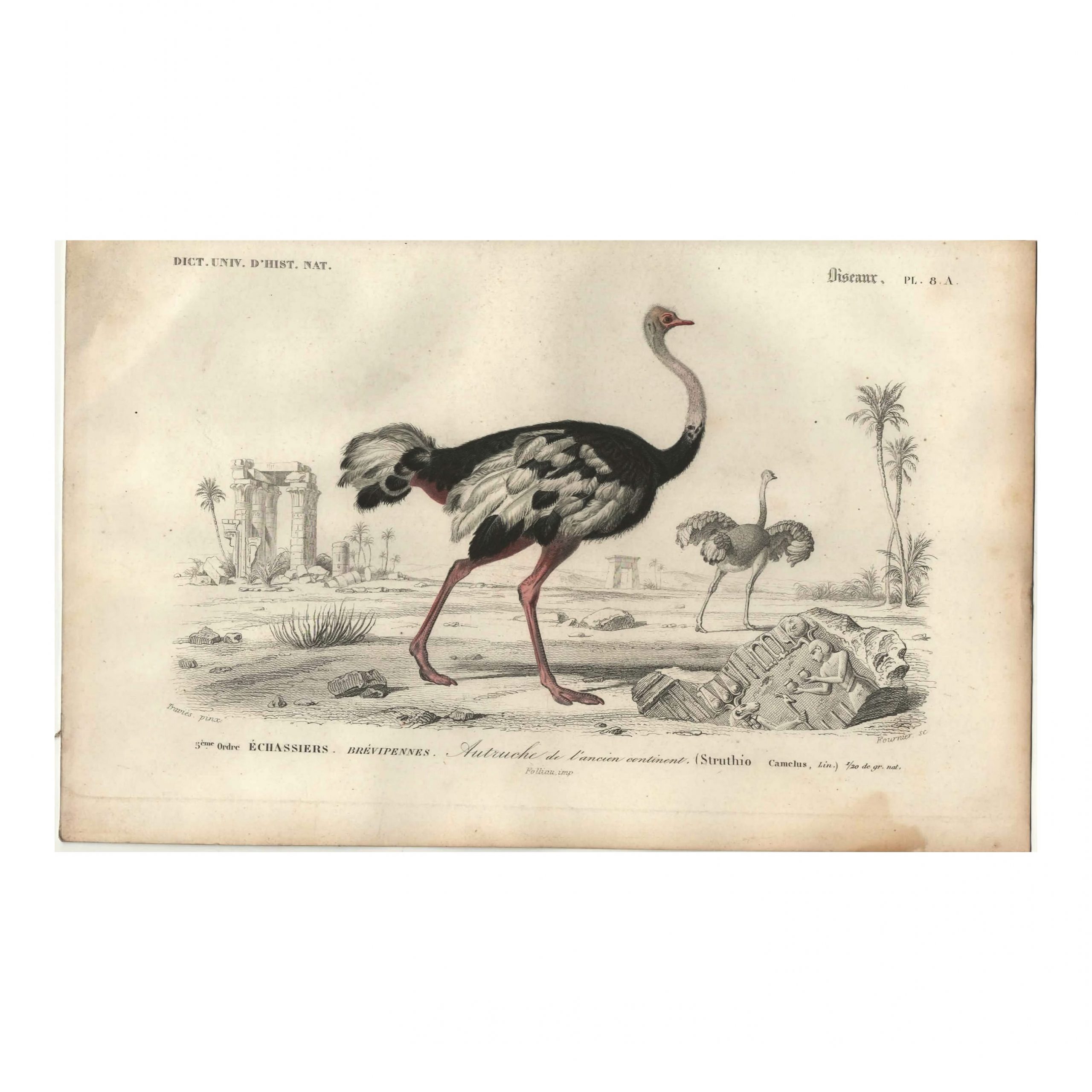 Autruche : Planche authentique de 176 ans ans d’âge, pas une simple reproduction