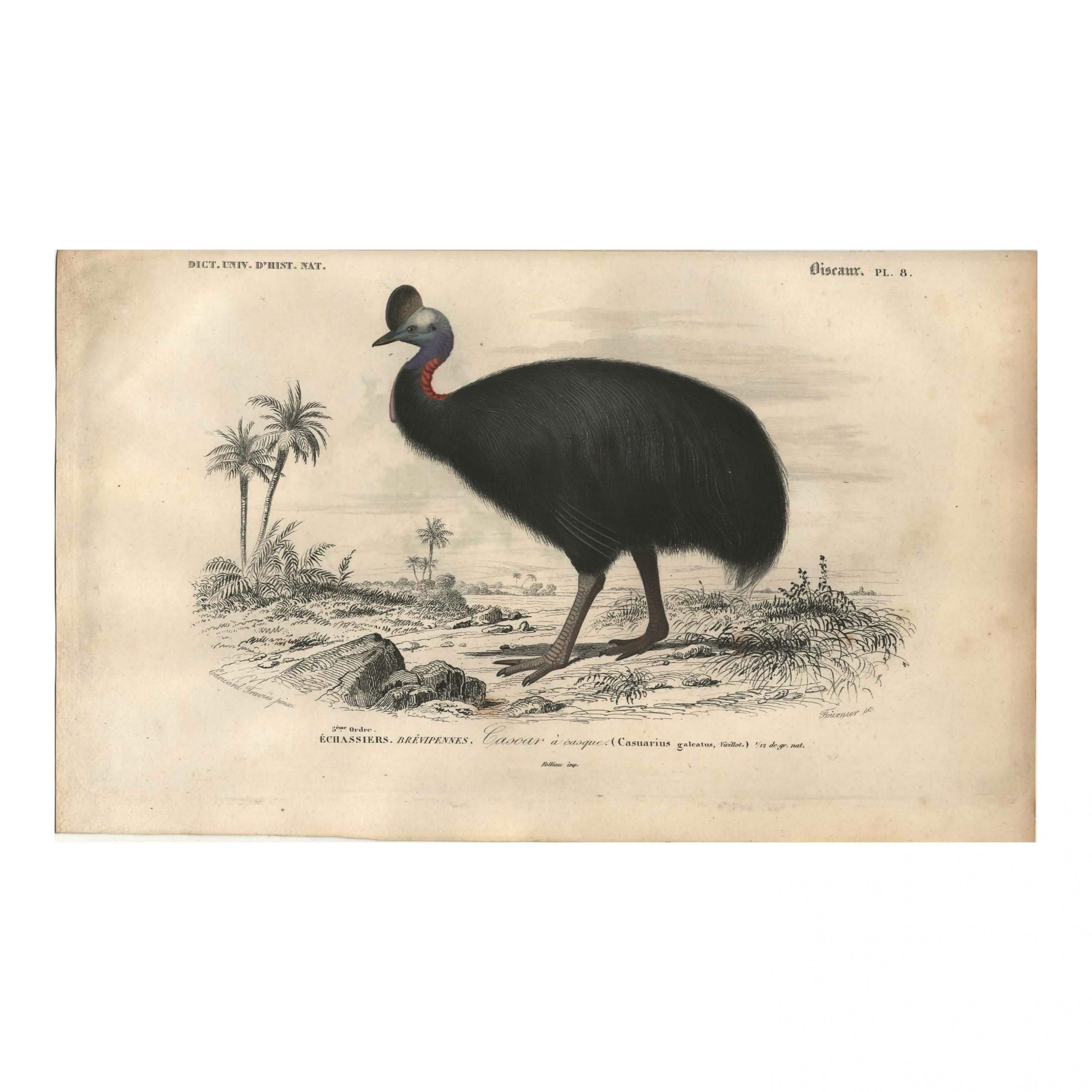 Casoar : Planche authentique de 176 ans ans d’âge, pas une simple reproduction