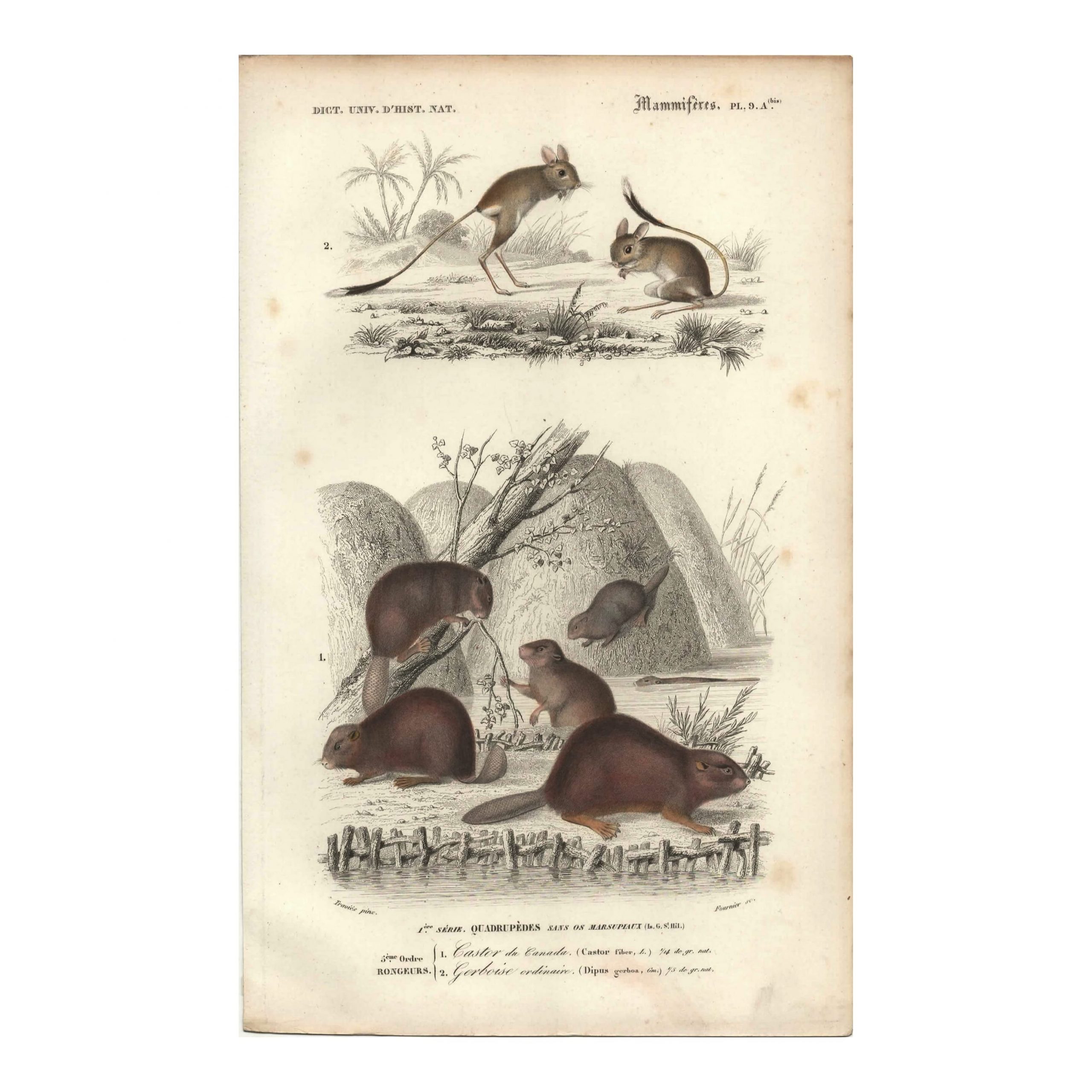 Castor et gerboise : Planche authentique de 176 ans ans d’âge, pas une simple reproduction