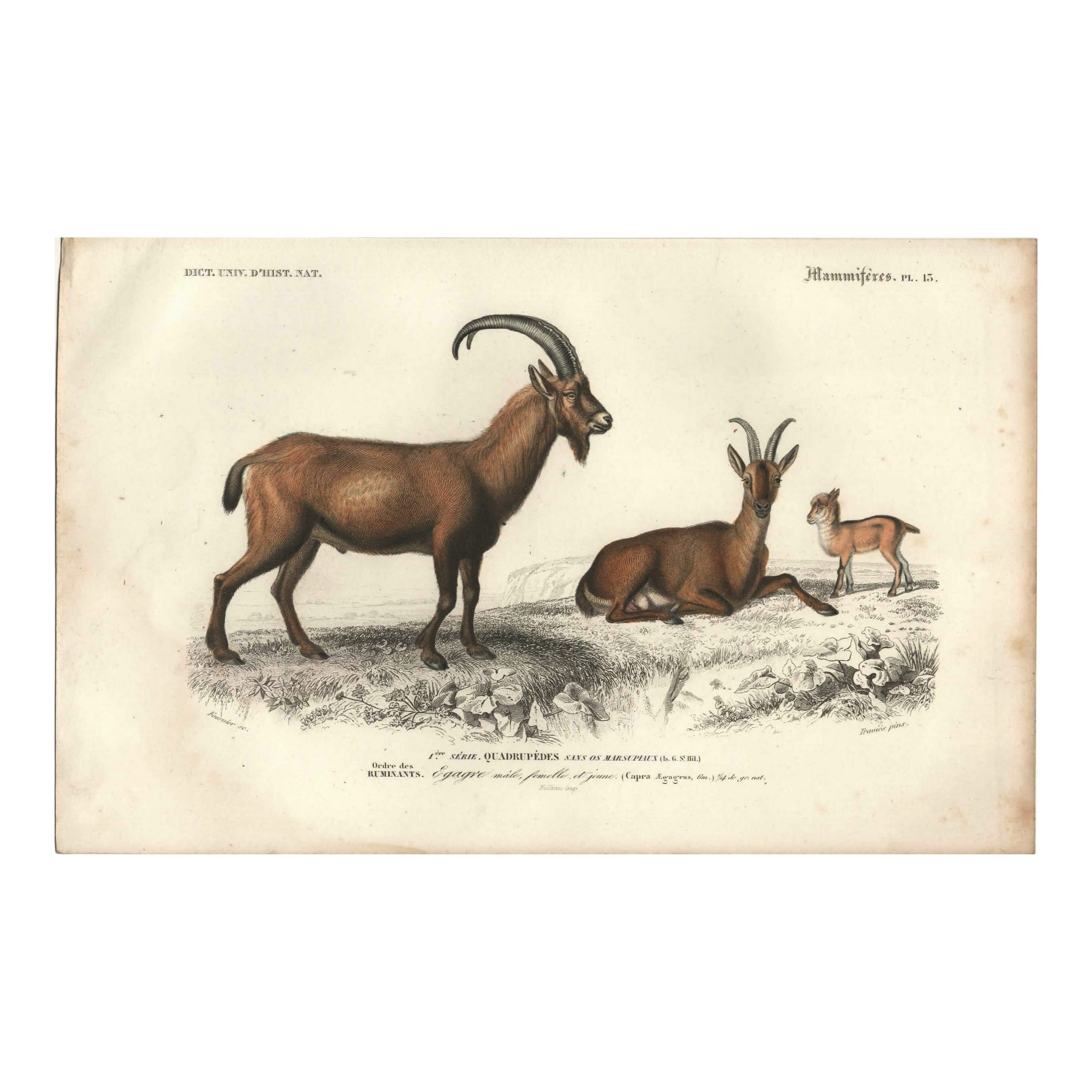 L’Égagre, ancêtre des chèvres domestiques, est un caprin sauvage et robuste des régions montagneuses. Cette planche offre un aperçu fascinant de l’histoire de la domestication et de la diversité des capridés.