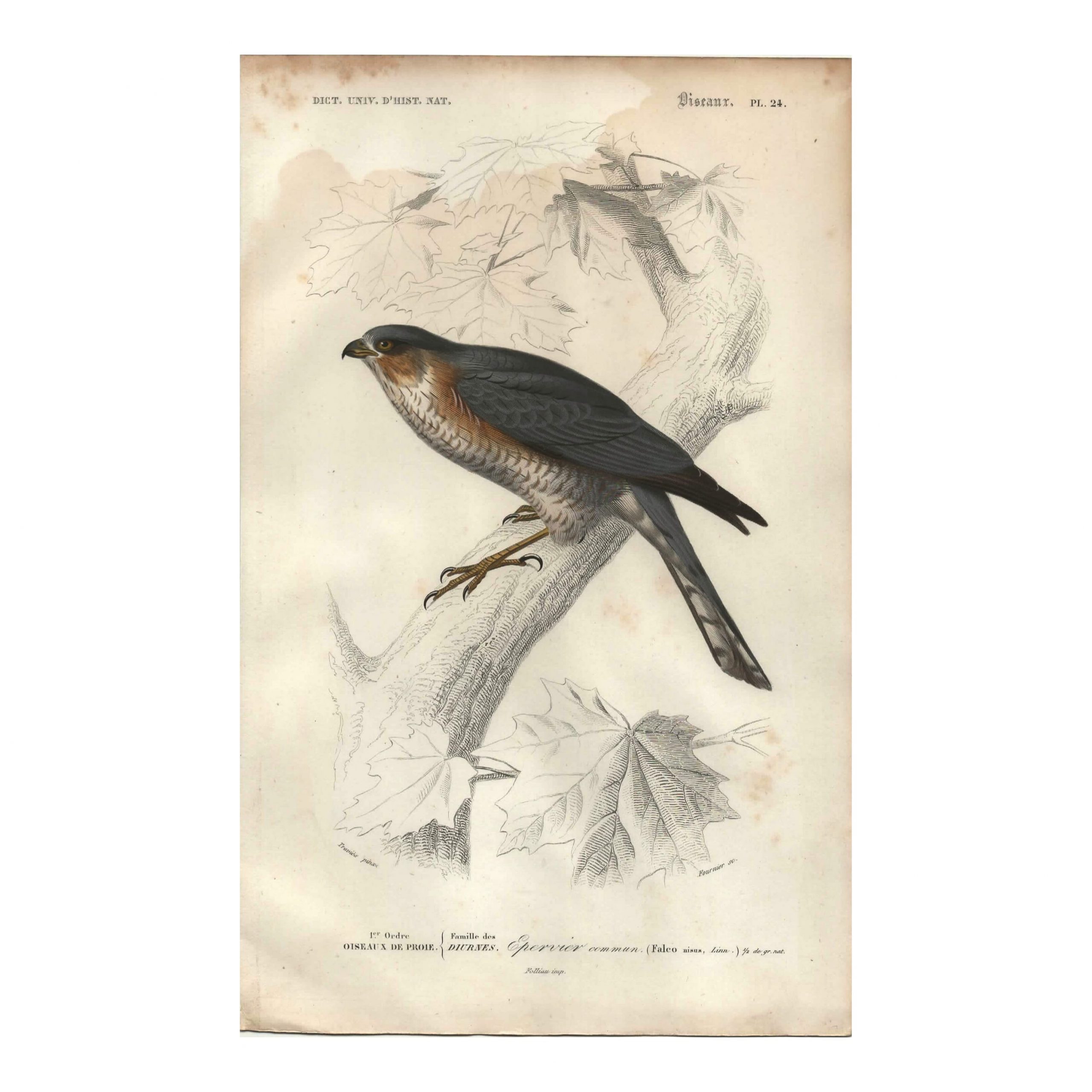 Épervier Commun : Planche authentique de 176 ans ans d’âge, pas une simple reproduction