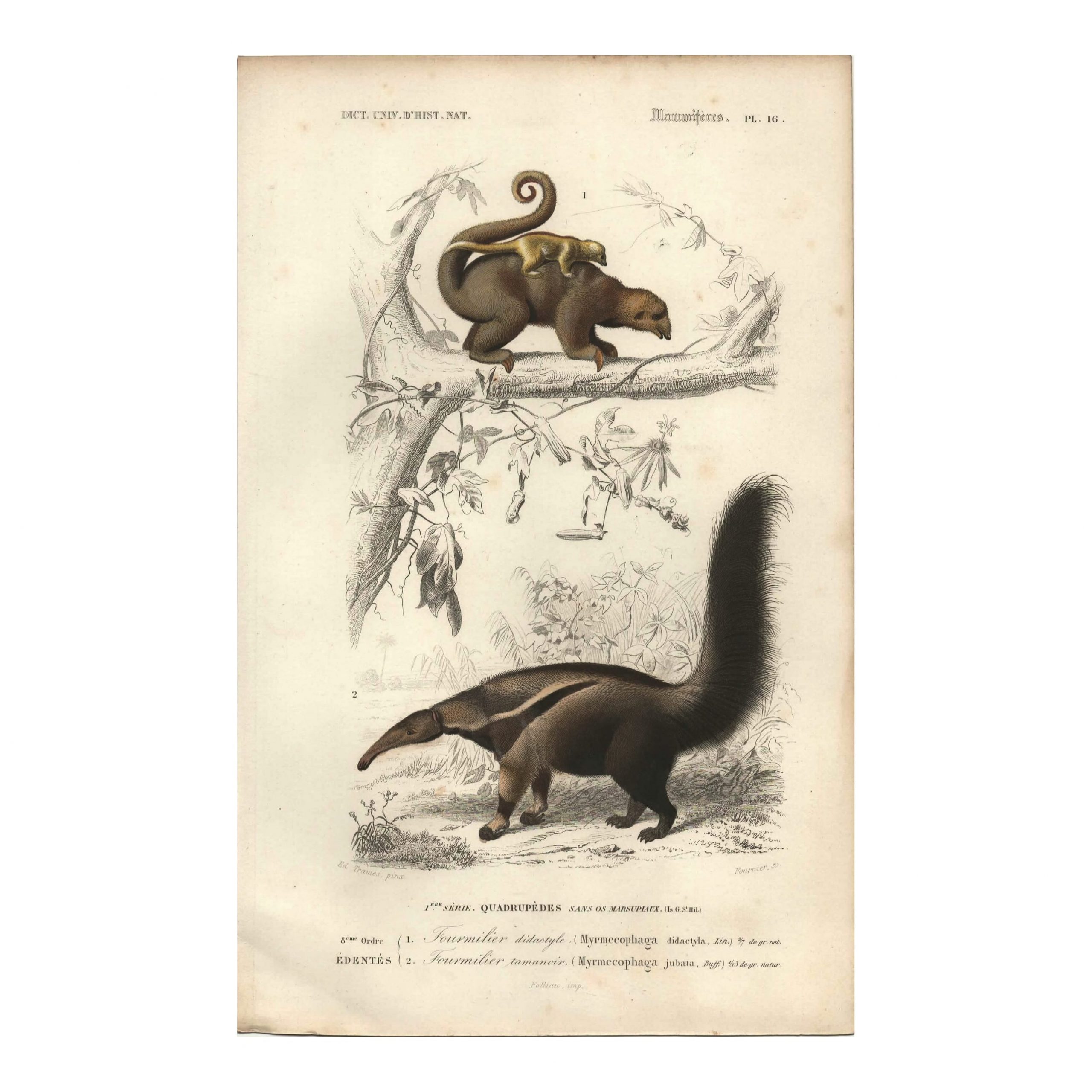 Fourmilier : Planche authentique de 176 ans ans d’âge, pas une simple reproduction