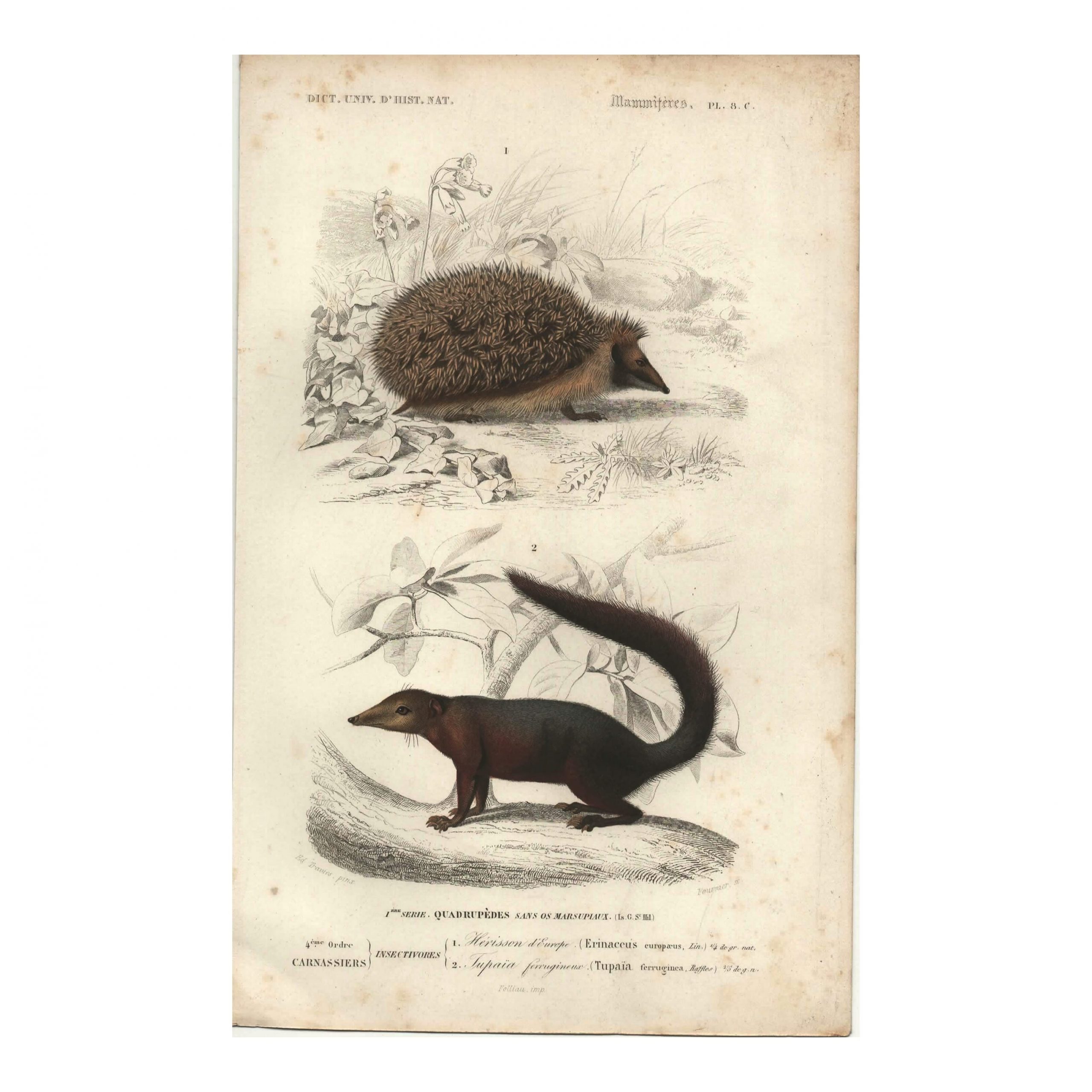 Hérisson et tuiapa : Planche authentique de 176 ans ans d’âge, pas une simple reproduction