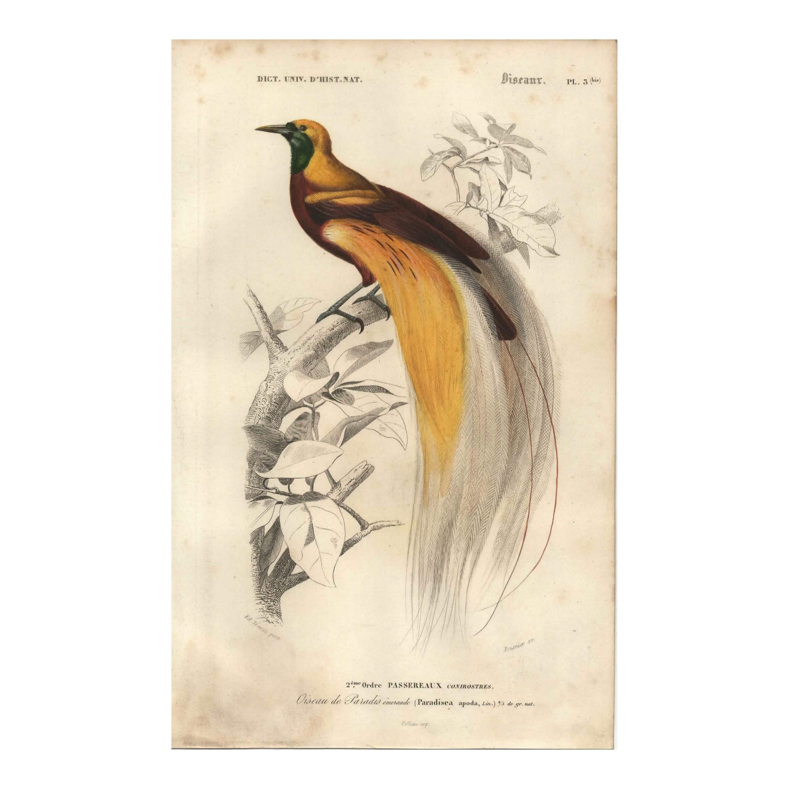 Oiseau de Paradis : Planche authentique de 176 ans ans d’âge, pas une simple reproduction