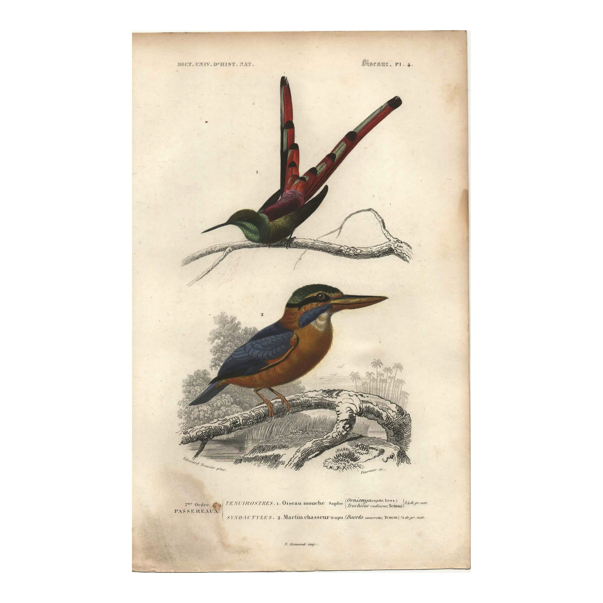 Oiseau-Mouche Sapho : Planche authentique de 176 ans ans d’âge, pas une simple reproduction