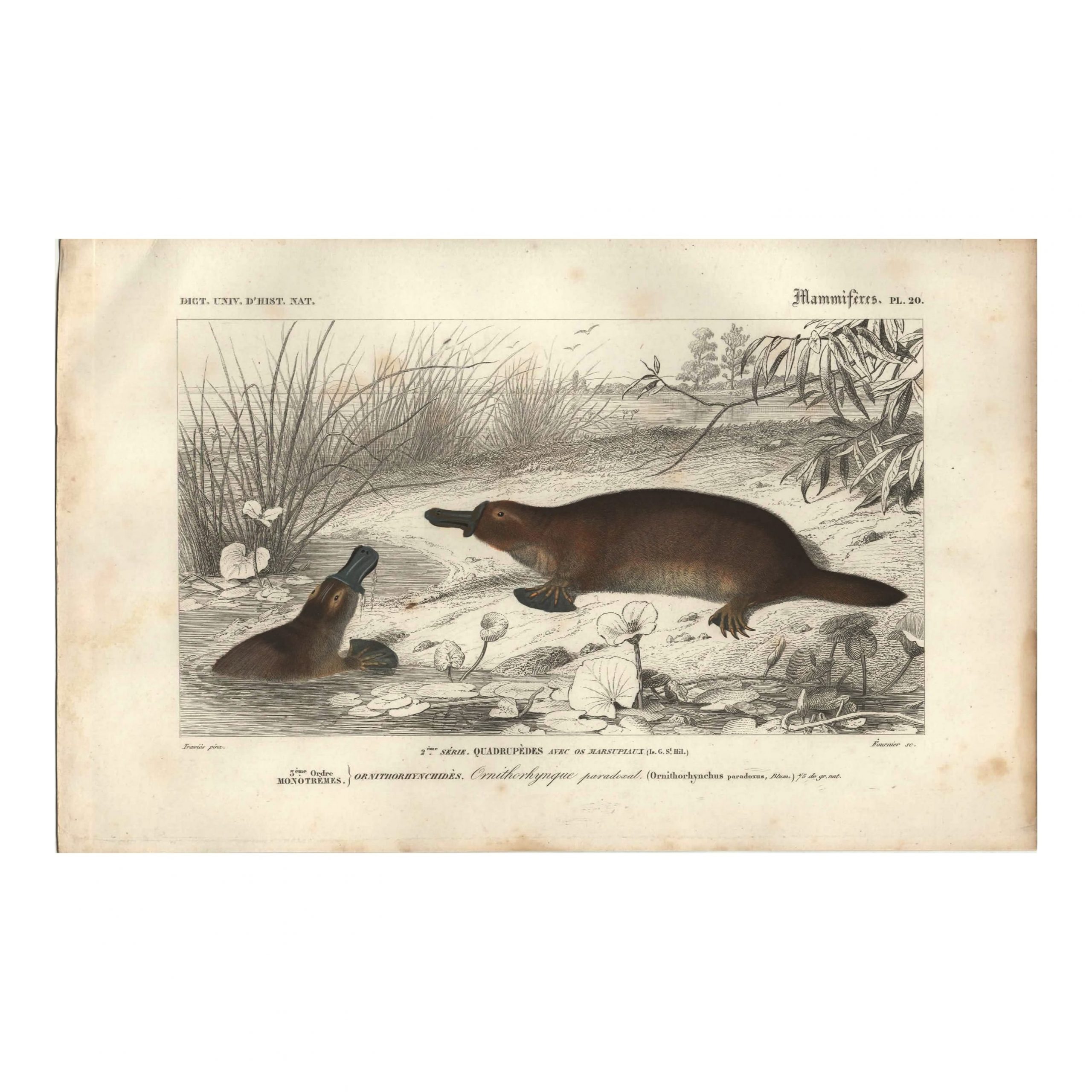 Ornithorynque : Planche authentique de 176 ans ans d’âge, pas une simple reproduction