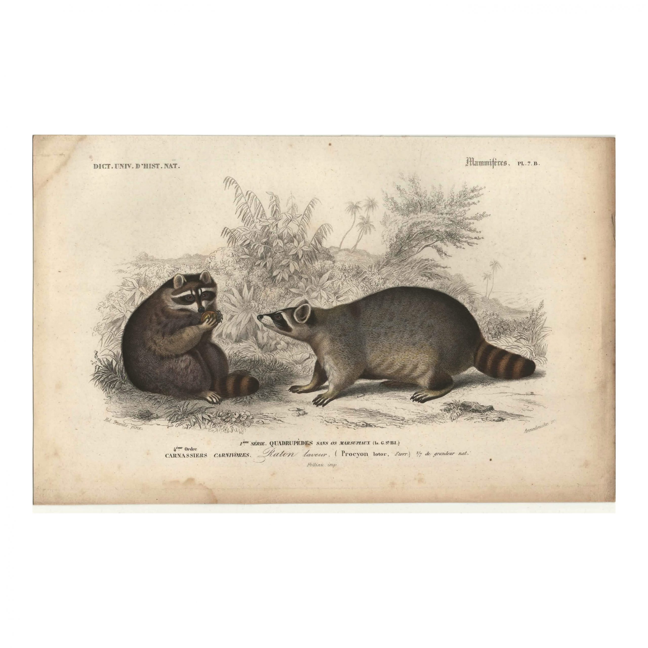 Raton laveur : Planche authentique de 176 ans ans d’âge, pas une simple reproduction