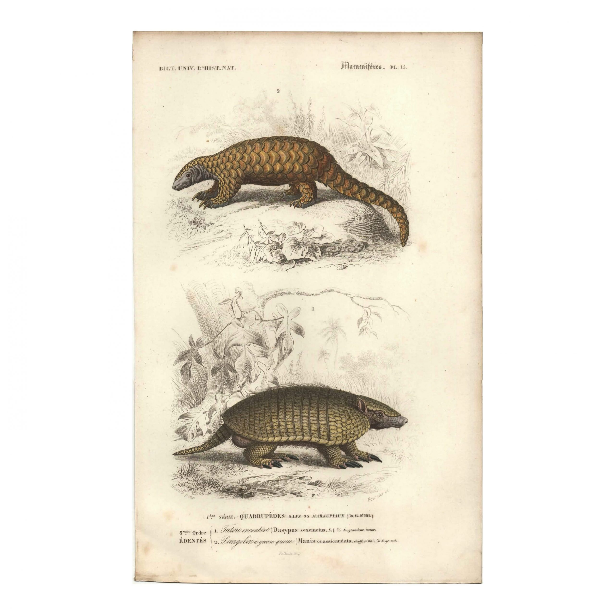 Tatou et pangolin : Planche authentique de 176 ans ans d’âge, pas une simple reproduction