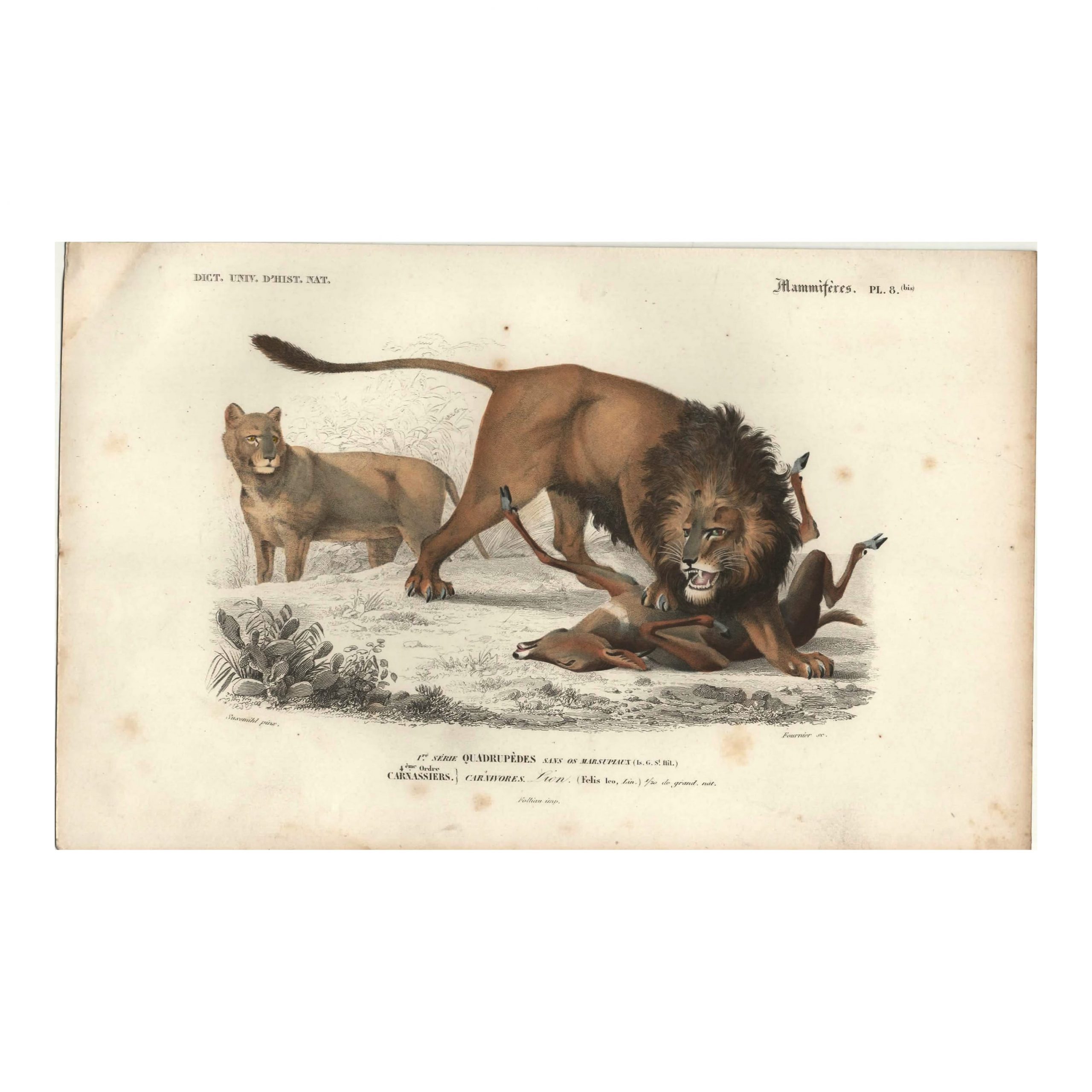 Lion : Planche authentique de 176 ans ans d’âge, pas une simple reproduction