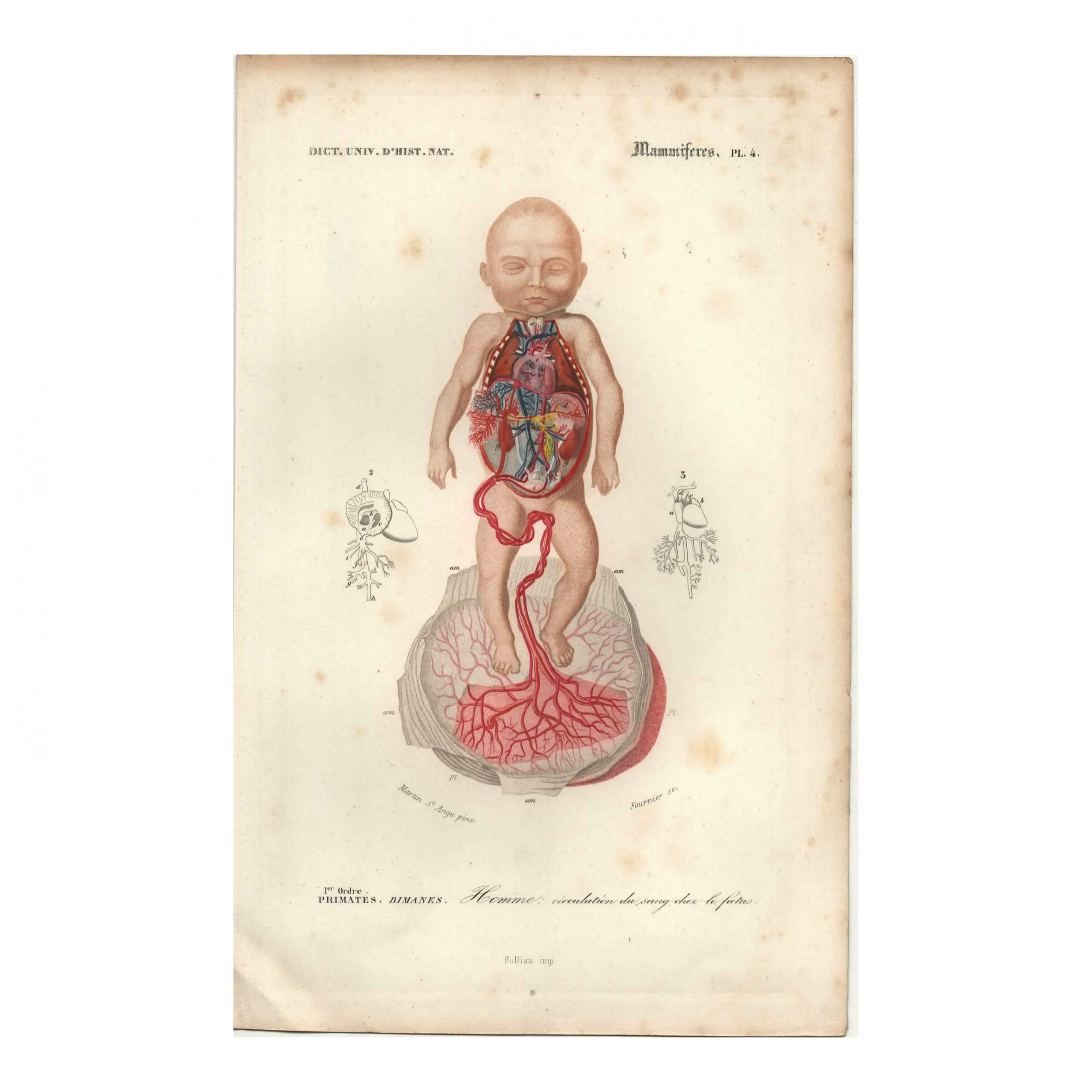 Anatomie Humaine – Foetus : Planche authentique de 176 ans ans d’âge, pas une simple reproduction