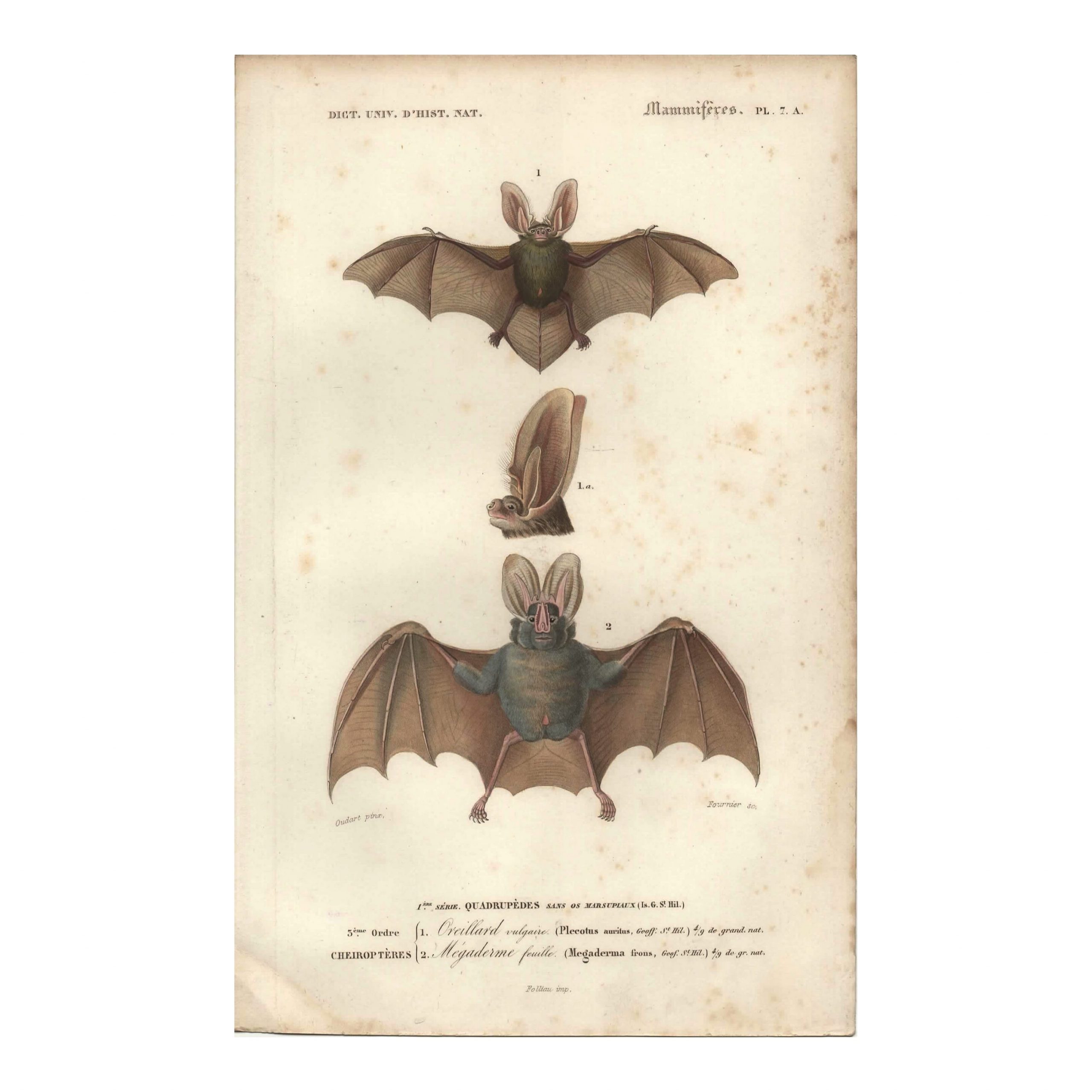 Chauve-Souris Oreillard : Planche authentique de 176 ans ans d’âge, pas une simple reproduction